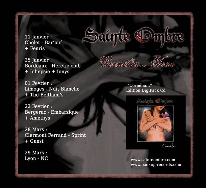 Le groupe SAINTE OMBRE, qui vient de sortir son nouvel album "Cornélia...", sera en tournée en France. N'hésitez pas à aller le soutenir près de chez vous !