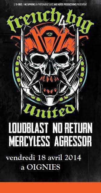 Le vendredi 18 avril 2014 à 20h30 au "Metaphone" (9-9 bis chemin du Tordoir, 62590) à Oignies, allez soutenir les groupes LOUDBLAST, NO RETURN, MERCYLESS et AGRESSOR.