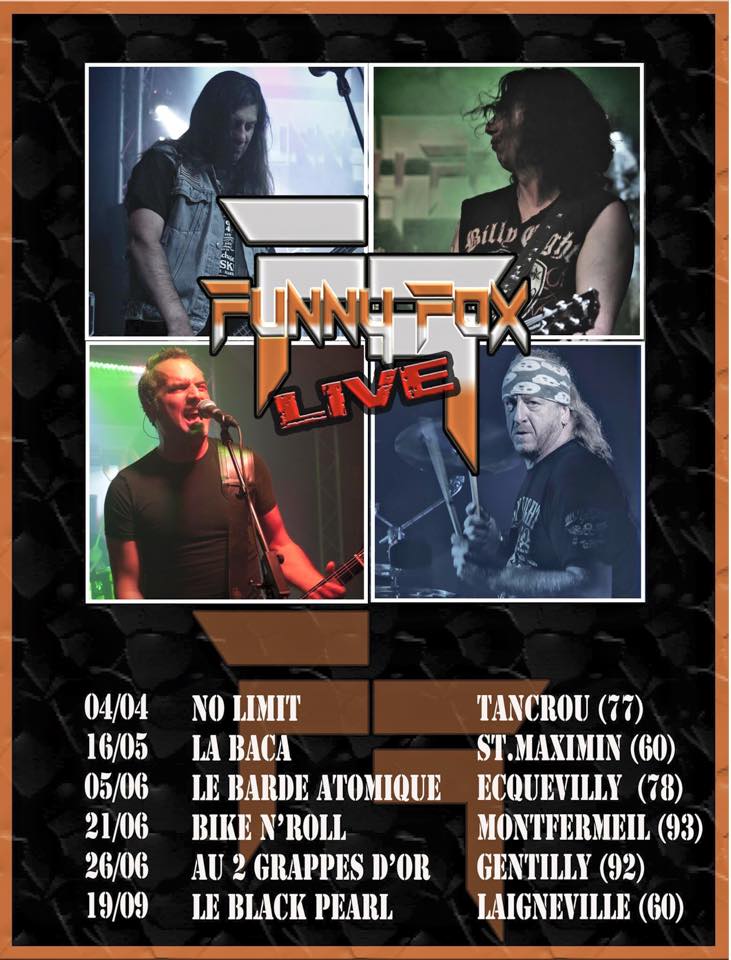 Le groupe FUNNY FOX effectuera quelques concerts à Tancrou (77), St Maximin (60), Ecquevilly (78), Montfermeil (93), Gentilly (92), Laigneville (60)... L'occasion de soutenir ce groupe près de chez vous...