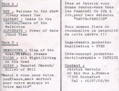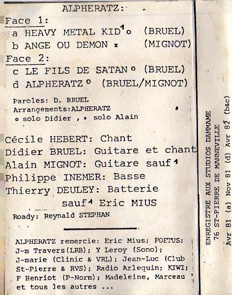 ALPHERATZ édite une cassette contenant ces 4 titres enregistrés. Cette cassette sera vendue en 100 exemplaires