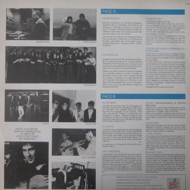 Cet album du nom de "Musiques et paroles... de Bourges", sera remis aux artistes qui participeront au