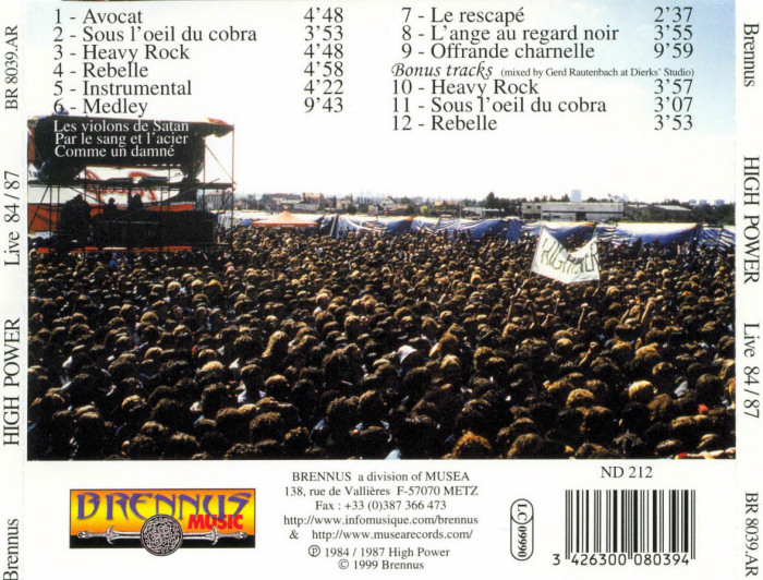 HIGH POWER se sépare fin 1987, après les départs successifs d'Alain Pavon et d'Eric Pouey. |
