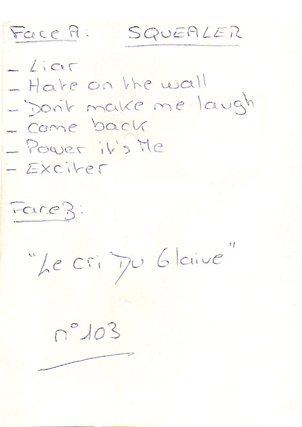 Bien après, en 1984, SQUEALER sort un 45 tours deux titres, très rare aujourd'hui et