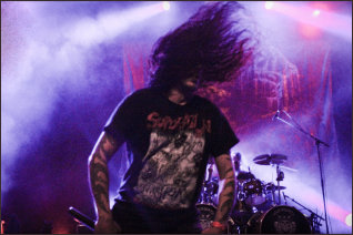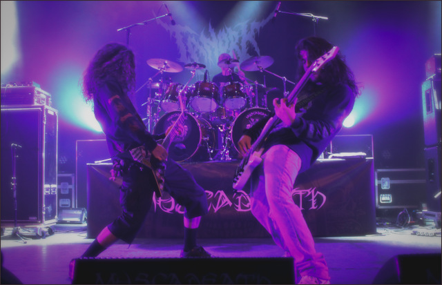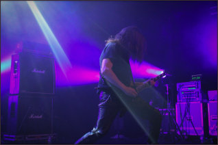 Mais cette prestation commence mal avec une corde cassée de la double-guitare. Alors, il faut meubler. Le fondateur du groupe discute énormément avec le public, le remerciant de soutenir la scène Death, remerciant les bénévoles et présentant d'emblée Gog à la batterie, Alex à la basse, Victor et Alejandro aux guitares. Le problême étant résolu, le set peut reprendre.