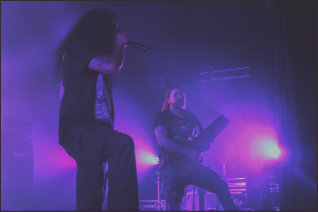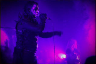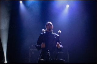 Sous les lumières bleues, Hatred Salander au corpse paint noir et blanc éclaboussé, entouré de la blonde Cinis, du fou famine encapuchonné à la guitare et du puissant morphée derrière les fûts. les masques effraient, l'ambiance est délétère, le show sent la folie à l'état pur. Après l'intro "Géhenne", Versatile enchaîne à la suite "Enfant Zéro" et "La Régente Blême" passent à la moulinette.