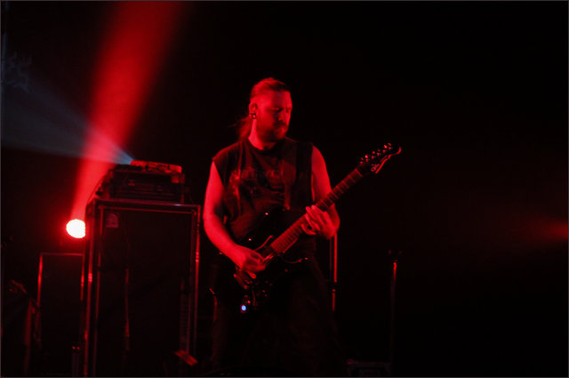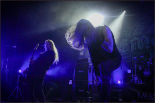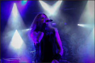 Puis arrive le test : "We released a new album in August". "Hold Hammers High" se lance, avec son rythme plus lent et aux parties de textes presque parlés. A voir les montées sur scène, le nouveau morceau est plutôt bien perçu. il est temps pour les présentations. Johnny introduit le nouveau guitariste Thomas, les autres membres bien évidemment, en finissant par le maître des fûts Anders qui nous lâche un petit solo. "This next song is dedicated to you, guys !". Très rythmé "To My Only Son" est animé par de gros riffs avant de s'arrêter net. La batterie reprend de plus belle pour le puissant "No Sign Of Life", pendant lequel Fredrick slamme comme un dingue et enfin "Into Glory Ride", issu du premier album de 1991.