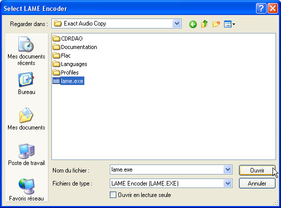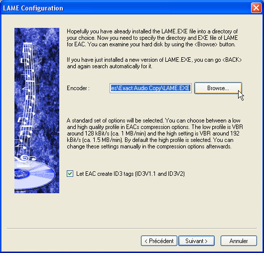 Files\Exact Audio Copy"). Ce fichier servira à encoder vos fichiers