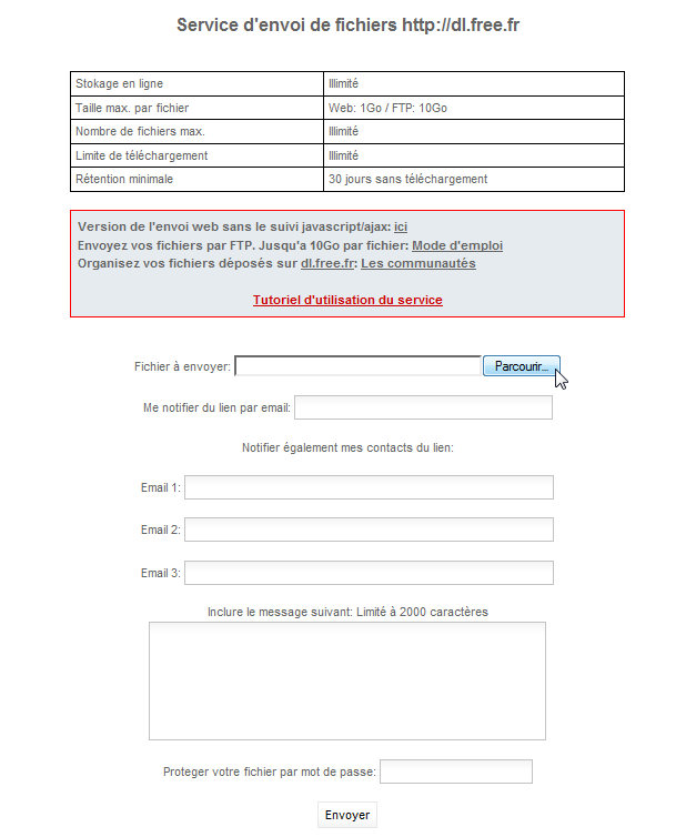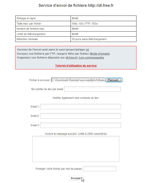 passe puissent charger le fichier que vous envoyez. Cliquez ensuite sur le bouton "ENVOYER" :