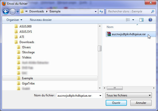 Sélectionnez sur votre disque dur le fichier archive contenant les fichiers que