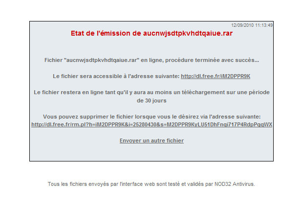premier lien est celui qui permettra à votre contact de récupérer le fichier